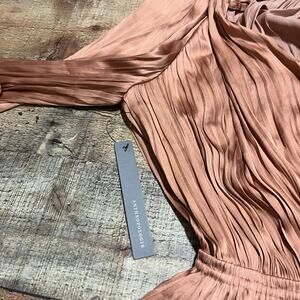Current Air Anthropologie NEW Women's Rust Dress Sz S Midi Pleated Satin Lined