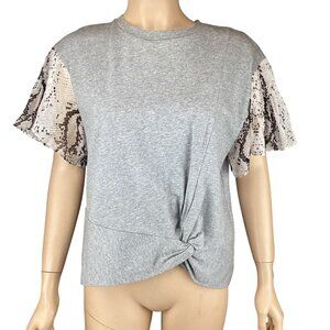 Current Air Anthropologie Top Size Small Basille Print Sleeve Grey Twist Front