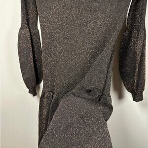 Current Air Black & Gold Shimmer Long Sleeve Bubble Waist Dress Women's Large