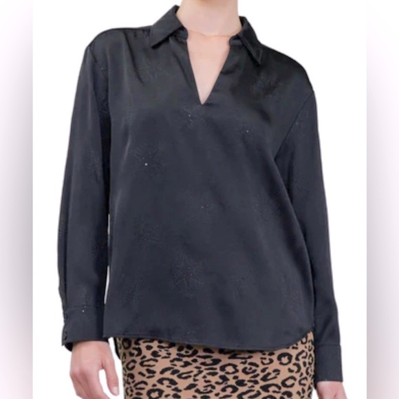Current Air Black Long Sleeve Blouse with Textured Star Detail