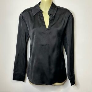 This sophisticated black blouse from Current Air features a notched collar and long sleeves, offering a sleek and fitted silhouette.