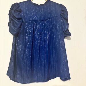 Current Air Blue Puff Sleeve Blouse with Mandarin Collar