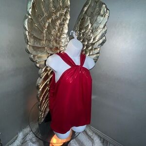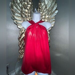 Current Air Fire Cross Halter Neck Top In Red, Medium Wet look. The perfect tank top for those warmer weather seasons. A beautifully draped halter neckline brings sophisticated allure to this relaxed, airy There's a little keyhole detailing the back, fastened by a single button closure. Sleeveless top. Solid color. Medium