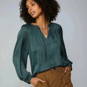 Current Air Green Blouse Flowy Balloon Sleeves Peasant Boho