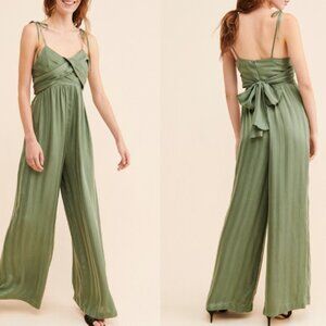 Tie shoulder straps, faux wrap front, flowy wide legs. Perfect multi season piece that can be layered with a jean jacket or cardigan for cooler temps! Size large. Sold at Anthropologie. Retails for $144.