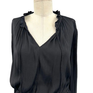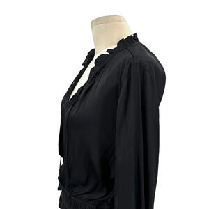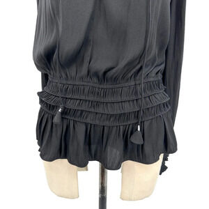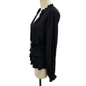 Current Air Los Angeles Shirred-Waist Split-Neck Top Black Size Large