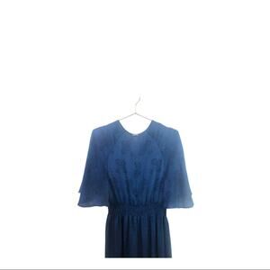 Current Air blue midi dress with smock waist floral print cinched waist with flouncy flutter sleeve. Sheer sleeve is open near bodice. Please see pictures.