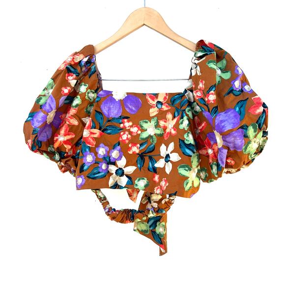Current Air Odette Crop Top Puff Sleeves Pants Co-Ord Set Floral Small Backless