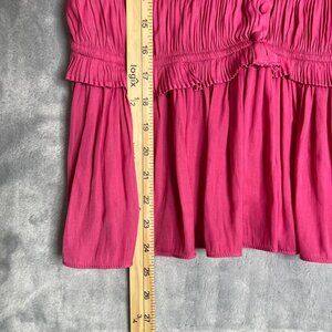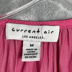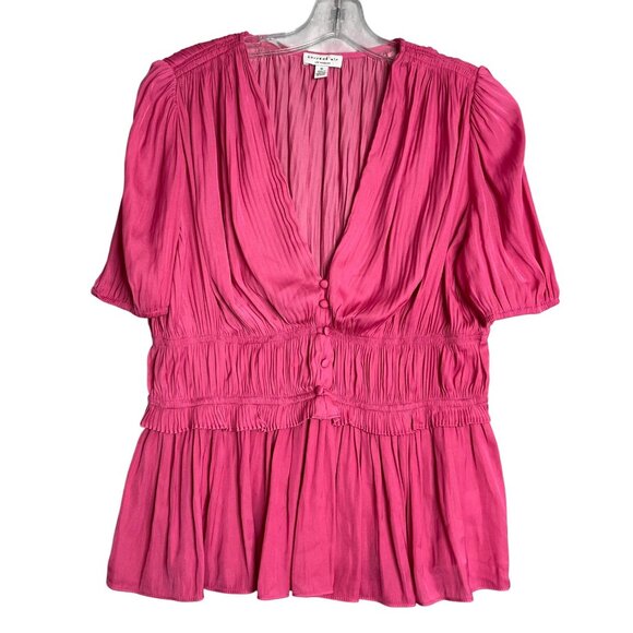 Current Air Pleated Puff Sleeve Top Womens M Pink V Neck Peplum Spring Summer