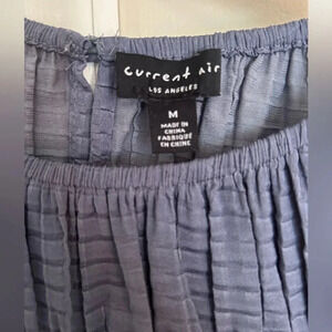 Beautiful luxury brand Current Air ruffled top, color is a steely dark blue gray. This top is in good pre-owned condition. There is some light fraying around the armhole as pictured. Other than that, in excellent condition stretchy loose fit for a comfortable summer outfit.