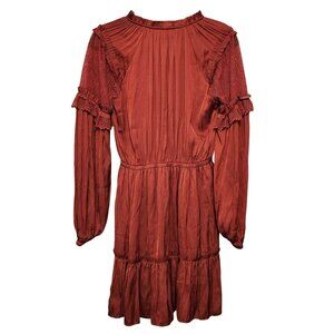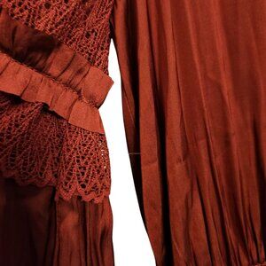 Current Air Rust Satin Mini Dress Size Small Lace Long Sleeves