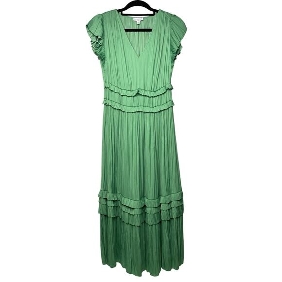 Current Air Sereia Pleated Midi Dress Women's Small Green Flutter Modern Ruffle