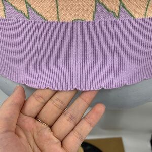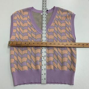 Current Air Sweater Women L Large Lilac Creamsicle Funky Ribbed Knit V Neck Vest