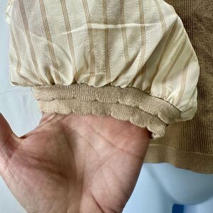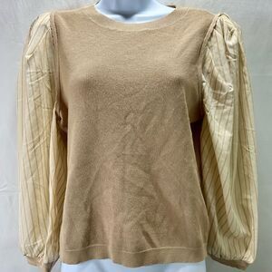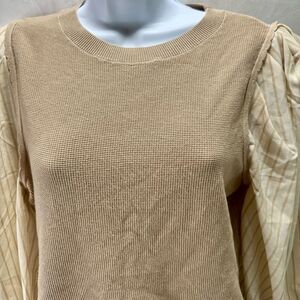 Current Air tan sweater with puff striped sleeves detailed trim size m