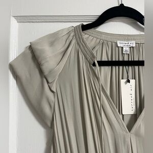 Current Air Tiered Pleated V neck Mini Dress size large gray taupe color