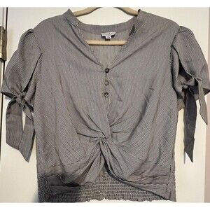 Current Air Top Womens Medium Short Sleeve Bow Tie Front in Striped