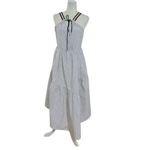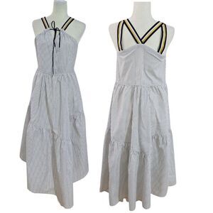 Current Air Women Sleeveless Pin Stripped Tiered Midi Dress Travel Vacation Sz S