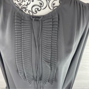 Current Air Ruffle Pleated Front Tie Neck Keyhole Top