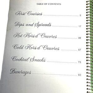 This vintage spiral-bound cookbook, authored by Miriam B. Loo, is a comprehensive guide to versatile appetizer recipes. It features sections covering first courses, hors d'oeuvres, dips, spreads, and more.