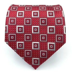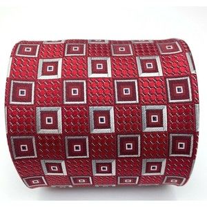 Current ERMENEGILDO ZEGNA Tie Red Gray Silver Squares Woven 100% Silk Necktie
