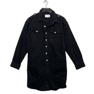 Current Elliot Black Shortall Denim Long Sleeve Collared Women’s Romper Sz 4