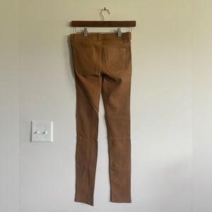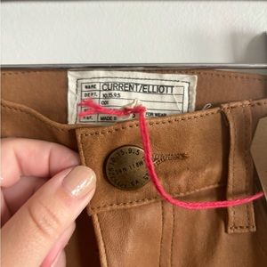 Great conditions NWT Current Elliot leather pants. No stains, rips or bad odor. Color light brown. Great for fall and winter. Zips up and buttons up for closure. Has pockets front and back. Low rise and skinny boot cut. 100% exterior lamb leather. Please see pictures for more details.