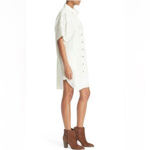 Current Elliot Oversized Smock White Eyelet Lace Button Up Mini Shirt Dress M