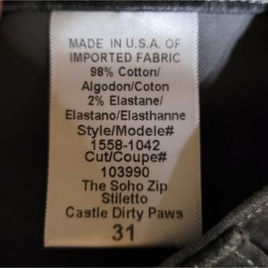 Current Elliot Soho Zip Stiletto Castle Dirty Paws Skinny Ankle Jeans