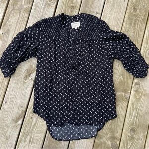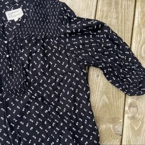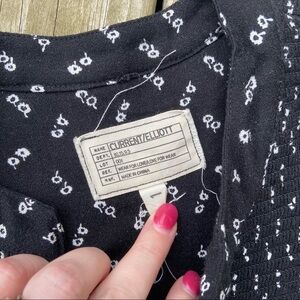 Current Elliot Willow Floral Crepe Blouse Small Black White Smocked