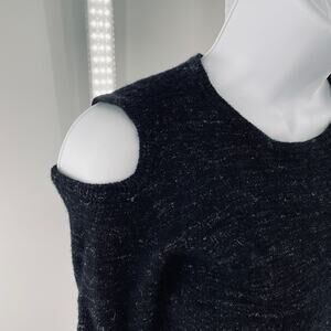 Current Elliott Black Heather Wool Open Shoulder Long Sleeve Pullover Sweater S