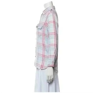 Current Elliott Blue Plaid Long Sleeve Button Up Top Size 2 Small