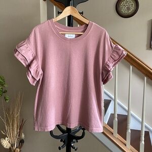 Current Elliott Carina Ruffle Sleeve Tee in Mauve Size 2 (Medium), in great pre-owned condition. No stains, holes, defects.