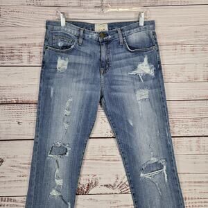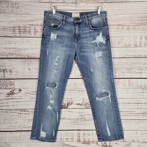Current Elliott Jeans Womens 28 Cropped Distressed Grunge Denim Medium Wash USA