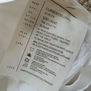 Current/Elliott Original Ankle Stiletto jeans in Sugar. New with tags. There are some marks on the legs that should come out with washing.
