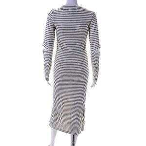 Current Elliott Quince Stripe Midi Dress Gray White Size 1 (Small) Cut Out Elbow