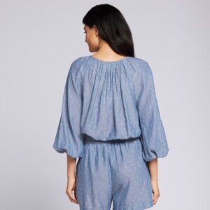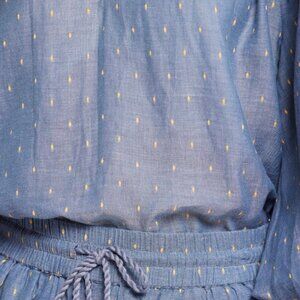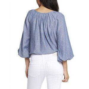 Current Elliott Seaside Swiss Dot Chambray Top Womens Blue Medium Cotton Blouse