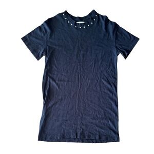 current elliott, distressed dress, rock stud details, glitter accents, black tee dress, size xs, edgy style, casual cool, streetwear vibe, statement piece, fitted silhouette, grunge fashion, versatile layering, modern basics, bold design