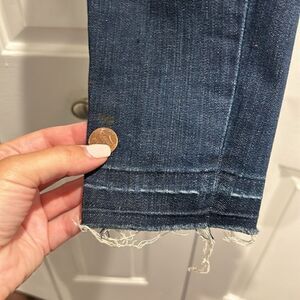 Current Elliott “Stiletto” Jeans, Size 24. Small stain on the left leg near the hemline (see pics)- otherwise great condition