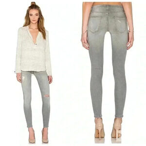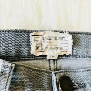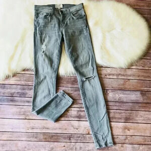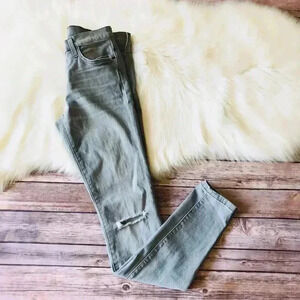 In good condition. No flaws. Size 27. Ankle skinny fit. Stretchy, distressed. Waist 13 1/2”, Rise 8”, Inseam 29”.