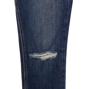 Current Elliott The Cropped Straight Jeans Mid Rise Distressed Denim Raw Hem