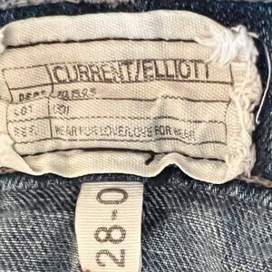 This is a pair of Current Elliot 'The Cuffed Skinny' denim jeans in the Amour wash, size 28. Made in the USA. Style no. 1707-0400. Fabric: 90% cotton, 6% Polyester, 4% Elastane. Excellent condition. Measurements;