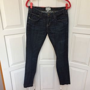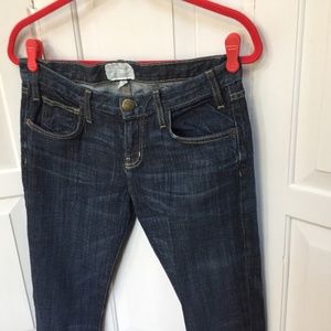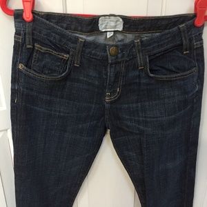 Current Elliott "The Roller" Empire Jeans with 5 pocket design. Unfinished hemline on each leg that can be rolled up or worn down.