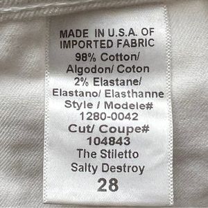 Current Elliott The Stiletto Distressed White Skinny Jeans