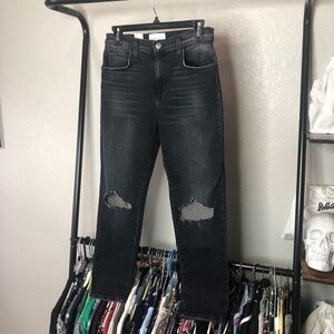 Current Elliott The Vintage Distressed Destroyed Black Mom Jeans