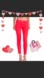 Features distressed skinny ankle jeans. “The stiletto in Victory Red”