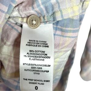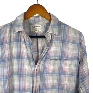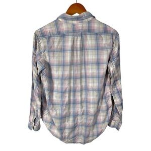 Current Elliott Top Shirt Button Up Long Sleeve XS Plaid Blue Pink