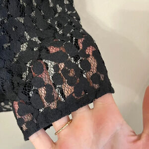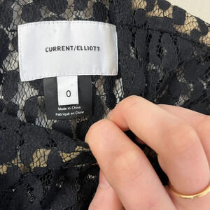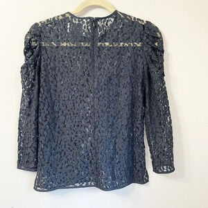 Current Elliott Womens Black Lace Blouse 0 Long Sleeve Back Zip Round Neck