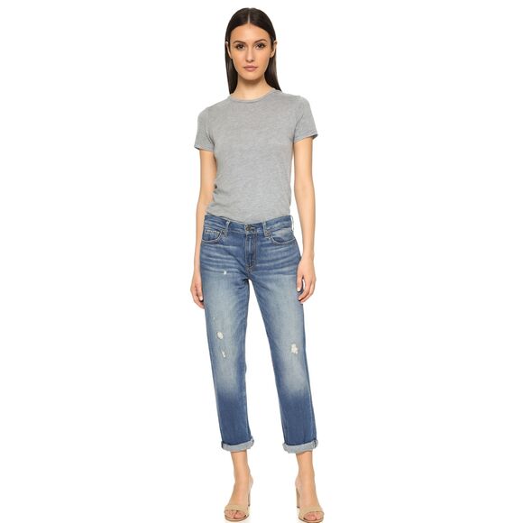These CURRENT/ELLIOTT “The Boyfriend” jeans are the perfect blend of relaxed cool and premium denim craftsmanship. Featuring a classic medium wash with subtle distressing, a slouchy-but-flattering silhouette, and rolled cuffs, these jeans embody effortless California chic.