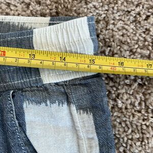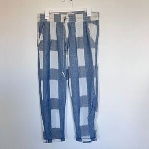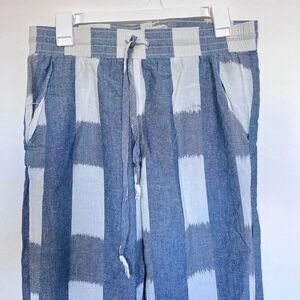 Current Elliott Women's The Drawstring Lounge Trouser Tokyo Revival Cotton and Linen Blend in Blue and White size 1