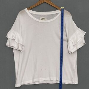 Current Elliott Womens Top 2 M Ruffle Roadie Tee Sugar White Distressed Classic